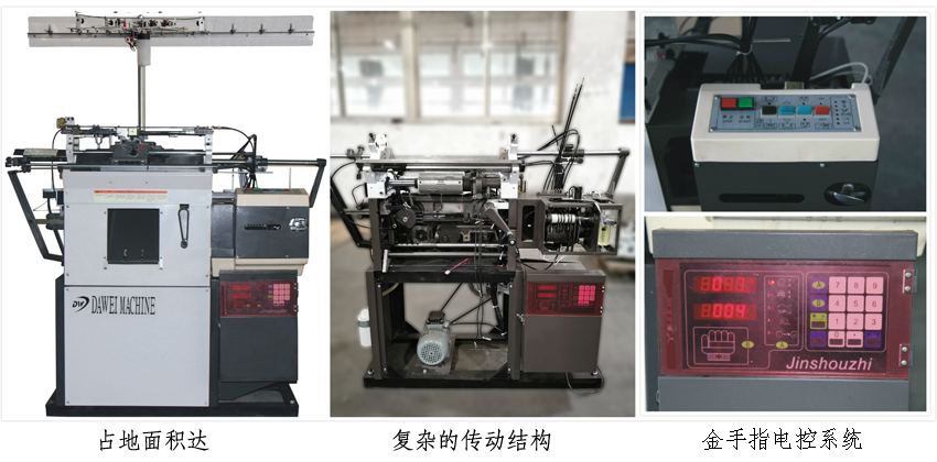 該款機器體積大,機頭大,傳動結構復雜,電控智能化程度低。因此、生產占地面積大,同樣針距的機器,生產效率相對于智能手套機要低20%-30%,并且機器的維修率高,耗電多。
