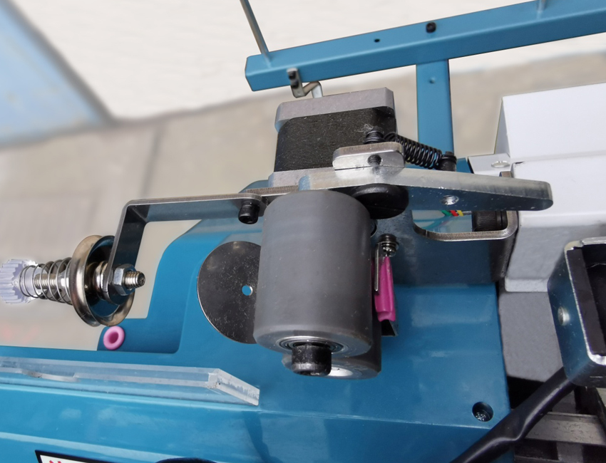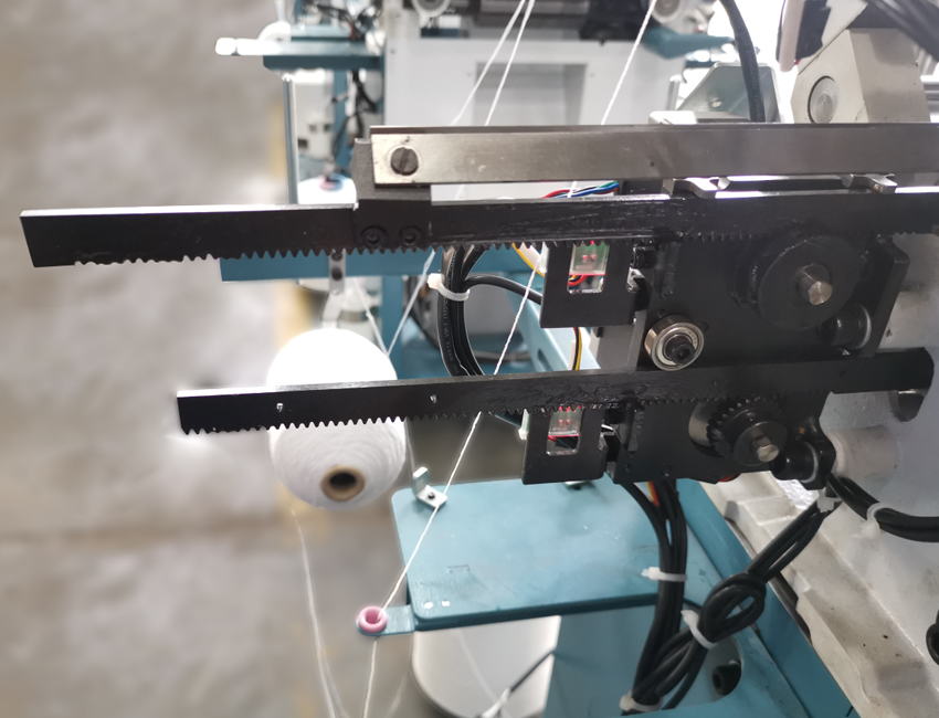 步進(jìn)電機(jī)控制的橡筋線自動(dòng)喂紗裝置,自動(dòng)控制羅口松緊,提高織物的穿戴舒適度。